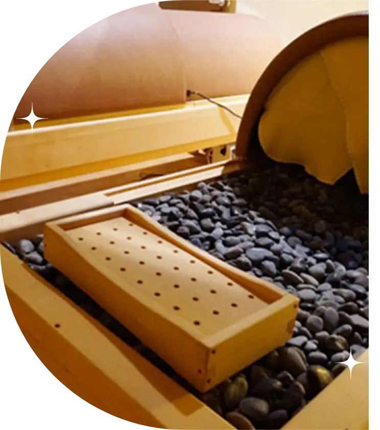 躺著就能進行的「乾式溫泉」源自日本的養生智慧。透過躺臥於富含能量礦石的熱感岩盤上,讓身體在穩定熱度中,自然出汗。